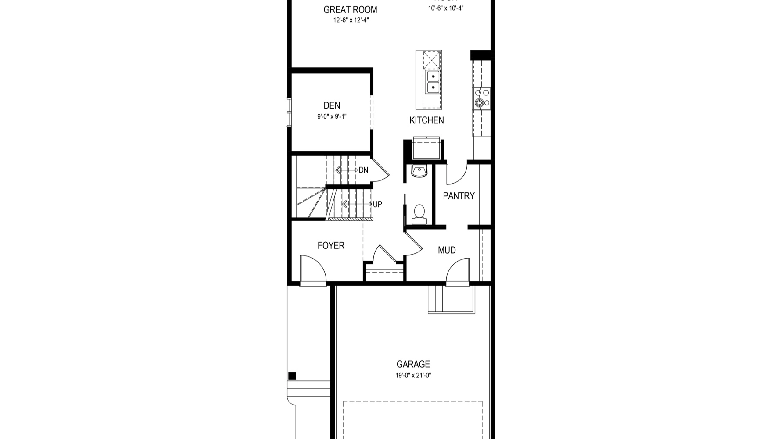 The Alfa offers 2,013 sq. ft. of well-balanced living space. A two-storey open-to-below at the front entry fills the foyer with natural light and creates a strong first impression, while a tucked-away half bath just off the foyer is kept out of sight from the main living areas. Toward the back of the home, the kitchen includes a central island and opens to the dining area and great room. Just off the kitchen, a pocket den offers a quiet, functional space for work or study. The walk-through pantry connects the kitchen to the mudroom, which features built-in storage and garage access.