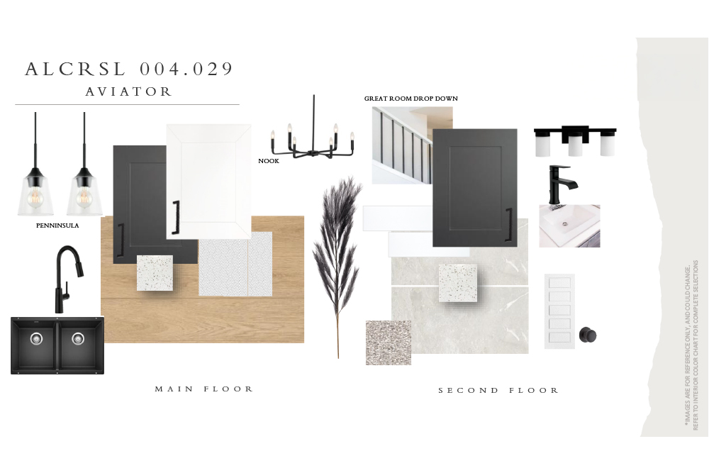 The Aviator is a 2,108 sq. ft. front attached garage home featuring 3 bedrooms, 2.5 baths and a bonus room. The main floor has a 9 ft. ceiling. The foyer, with a privately located Half Bathroom, leads into a combined, open-concept great room and nook area for dining and entertaining purposes. The modern kitchen has a built-in microwave and a large walk-in pantry for extra space. The Upper floor includes 2 bedrooms, each with walk-in closets, a spacious bonus room, a full laundry room, the Master Bedroom, and a main bathroom with double sinks and a linen closet. For added convenience, the laundry room includes a hanging rail and an extra linen closet. The Primary bedroom has a sizable walk-in closet and an accompanying ensuite featuring double sinks, and a soaker tub. The Aviator also has an optional dropped great room, basement development or a basement suite with optional rear entry to add an income suite to your home.
