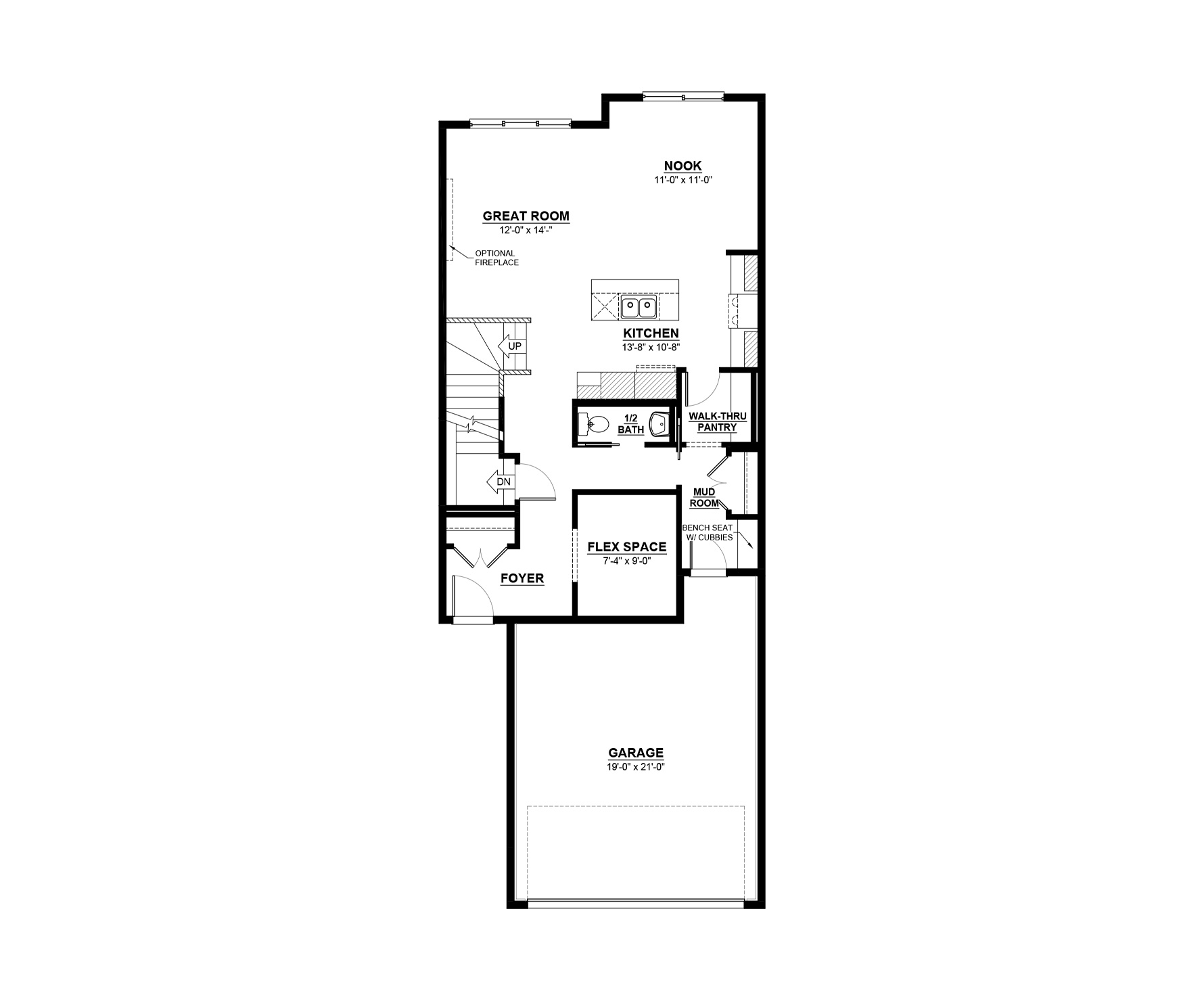 The Senna II has a total living space of 1,952 Sq. Ft. featuring 3 bedrooms, 2.5 baths, a main floor flex space, an upper floor bonus room, and 9’ main floor ceilings. Walking through the foyer pass by the flex space and private half bath into the kitchen adjacent to the great room with optional fireplace and nook. The kitchen includes an island with an extended eating bar for a walk-through pantry into the mudroom with shelf and bench with cubbies, into the double car garage. The great room of this home is open to above which creates and airy, larger than life feel. Up the stairs is a central bonus room next to the main bathroom and two bedrooms sit at the front of the home. The Primary Bedroom in this home features linen storage, an ensuite with double sinks and a walk-in closet that has access to the laundry room. The efficient laundry room with additional storage can also be accessed from the main hallway on this upper floor. Create more living space by developing the optional basement.