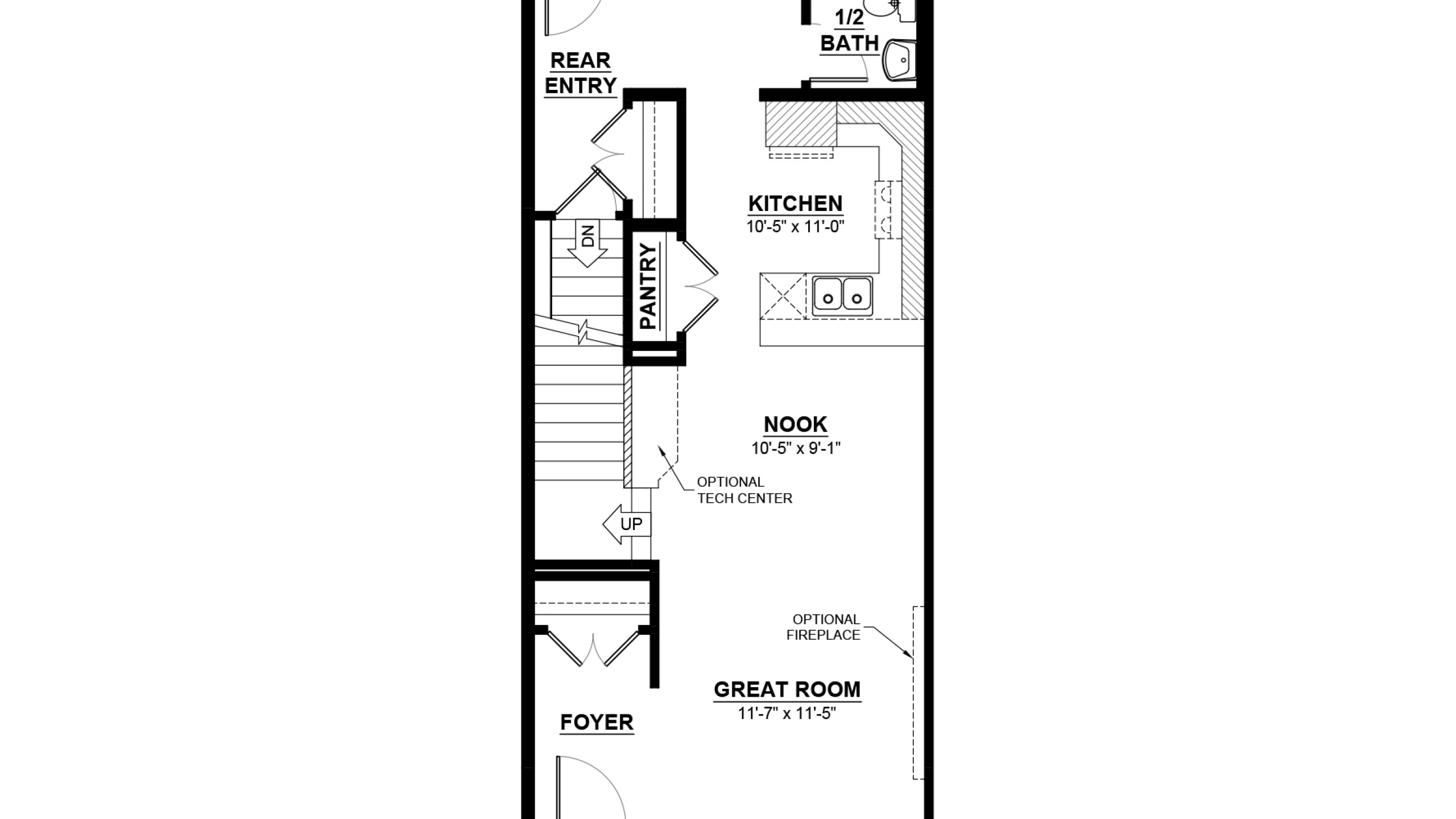 The Focus-d is a 1,400 sq. ft. duplex featuring 3 bedrooms and 2.5 bathrooms. The foyer welcomes you into the home with a closet and leads into the great room with optional fireplace. Center to this main floor is the nook with space for an optional tech center. The kitchen includes a pantry and an extended eating bar for additional hosting space. A half bath sit tucked away behind the kitchen for privacy and there is an additional closet at the rear entry. Two bedrooms sit at the rear of the home upstairs along with a main bathroom. Central to the upper floor there is a full laundry room with a shelf and linen storage. Included in the primary bedroom is a walk-in closet and an ensuite with a window for additional storage. Options include standard basement development, legal basement suite development with separate side entry, or a garden suite (where permitted).